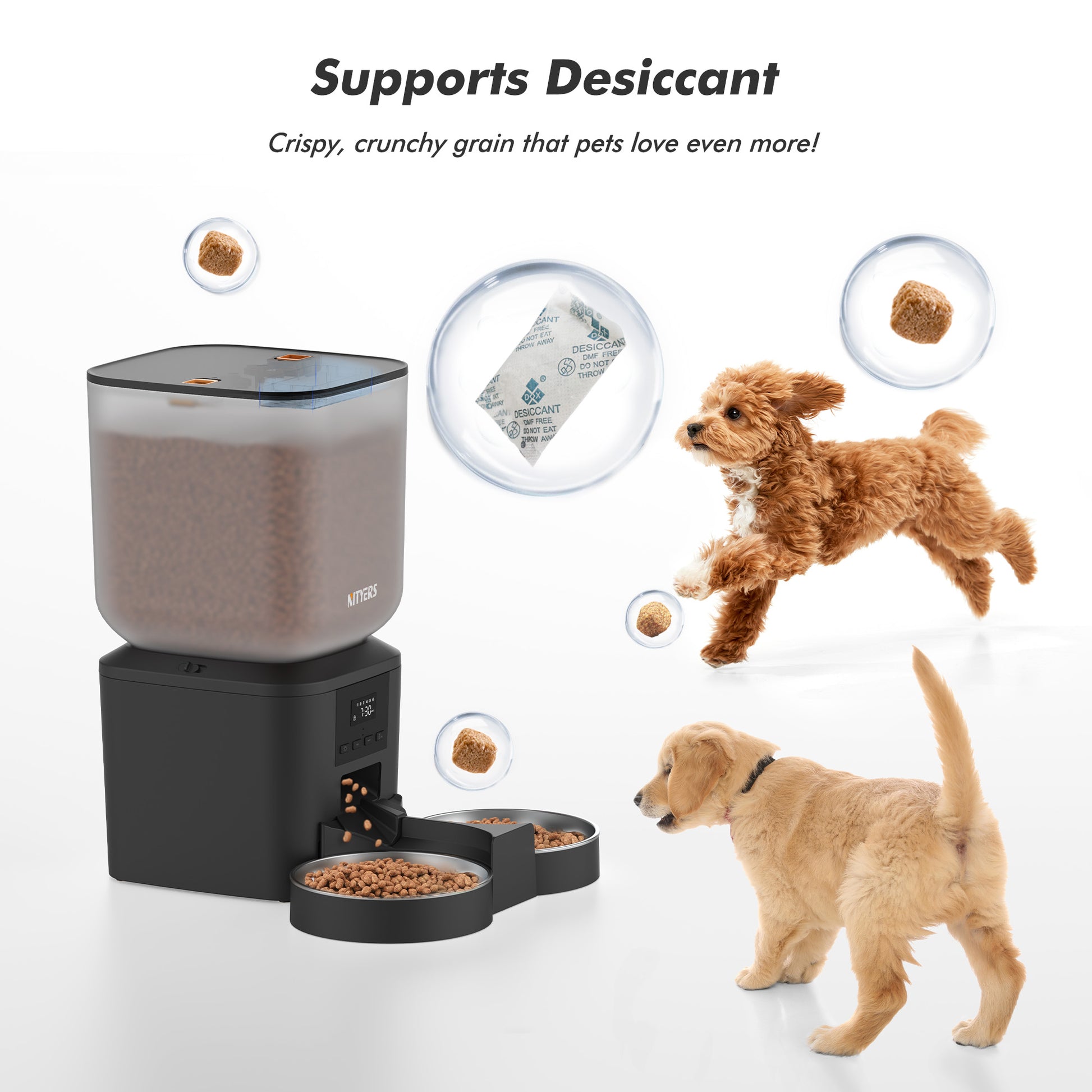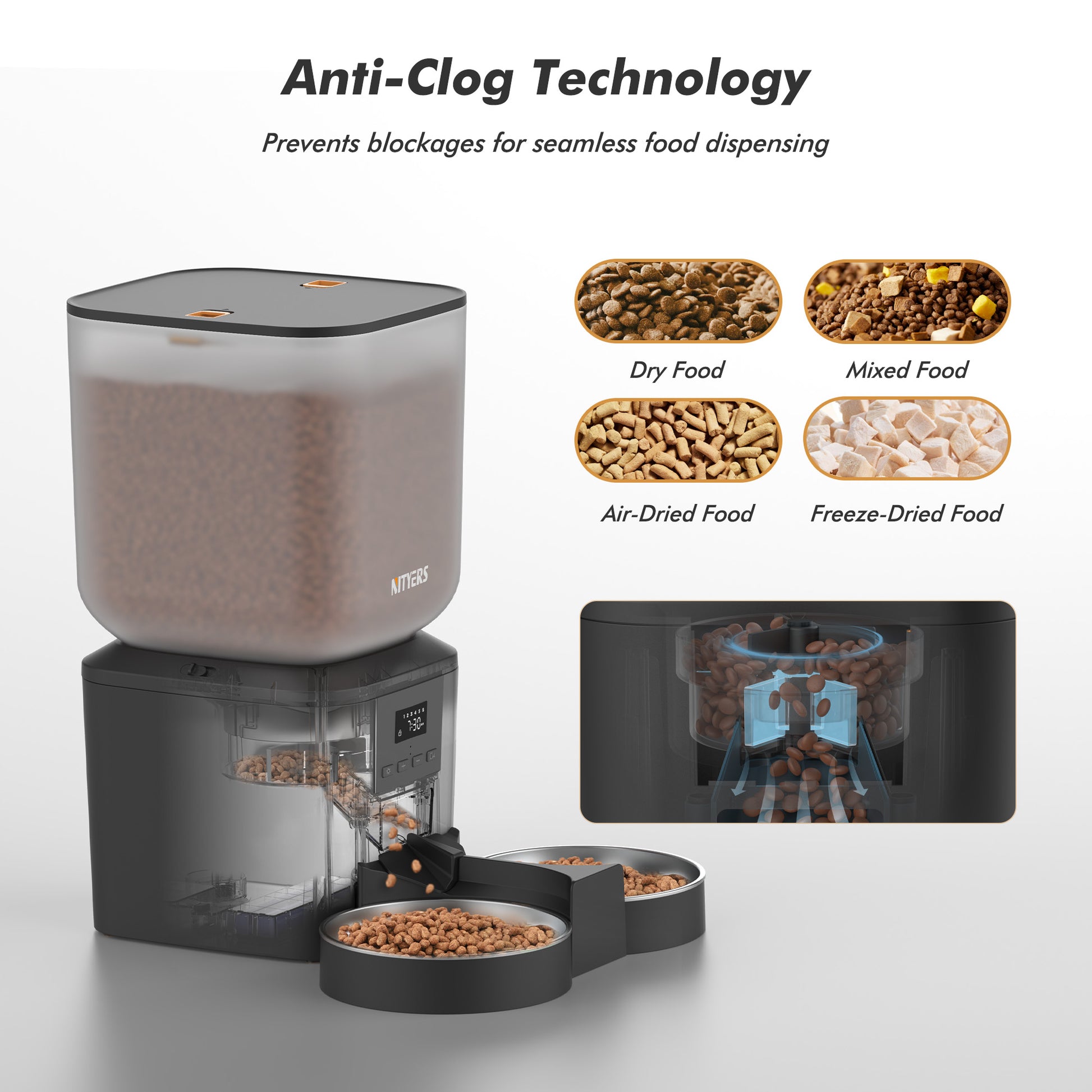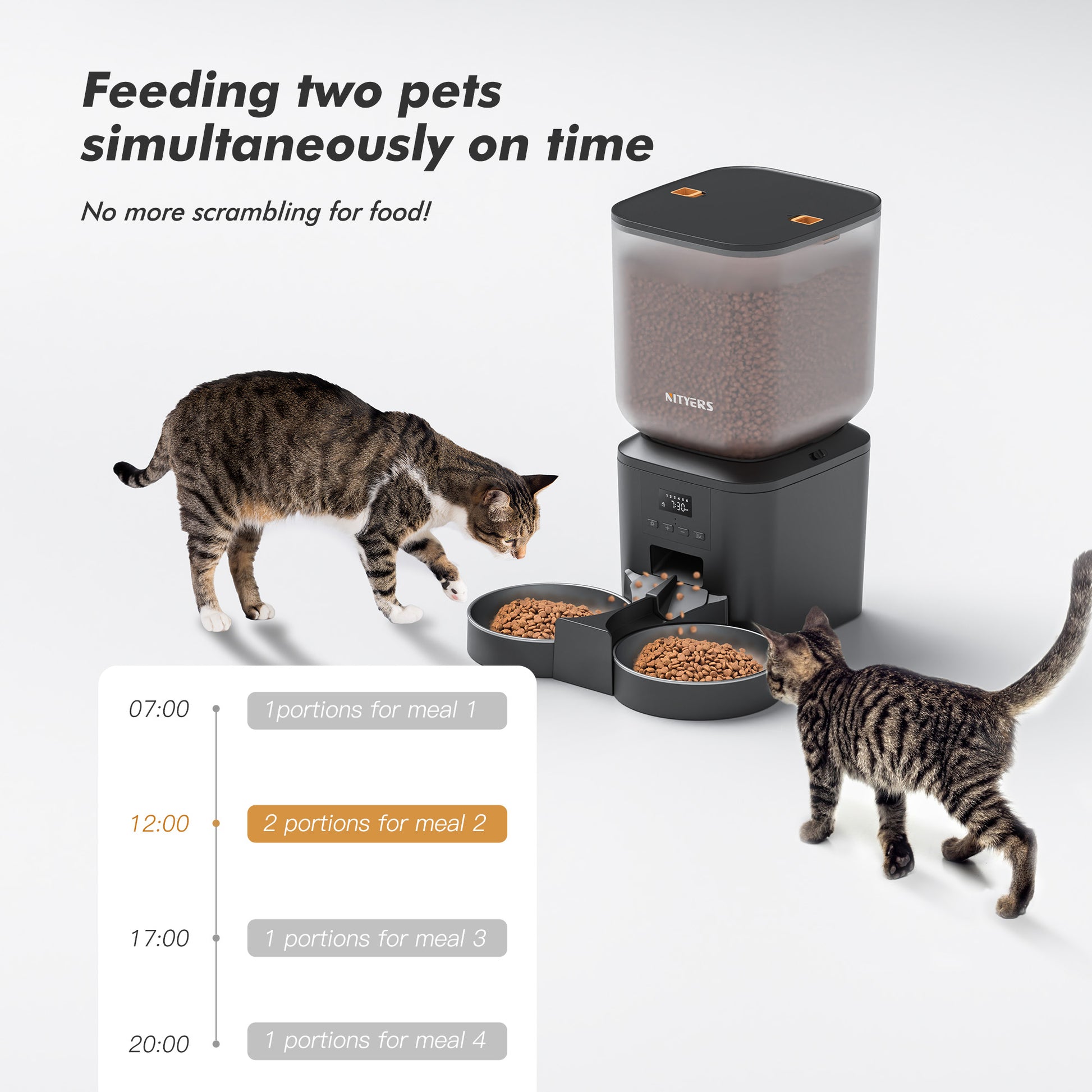 - Balanced Feeding for Two: The Nityers automactic pet feeder serves two cats or 2 dogs simultaneously, ensuring food is evenly distributed to both sides. This dual-feeding setup and central partition design promote harmony during mealtime, preventing competition and ensuring both pets get their fair share.